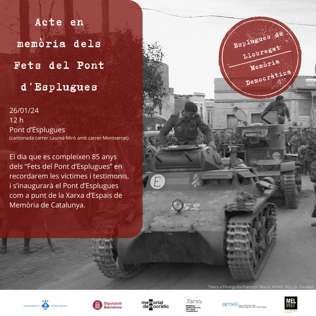 Acte en memòria dels "Fets del Pont d’Esplugues" El 26 de gener de 2024, coincidint amb el seu 85è aniversari, es commemoren els “Fets del Pont d’Esplugues” i es recupera la
